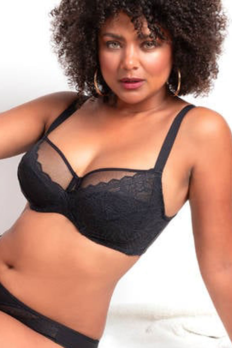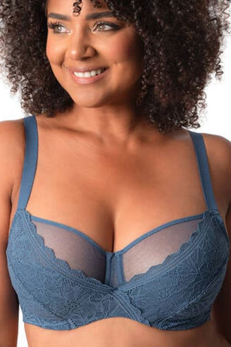 Biustonosz z miękkimi miseczkami z fiszbinami o kroju typu balcony bra. Miseczki krojone są na trzy części. Miseczki posiadają poziome cięcia. Biustonosz wykonany z pięknej, francuskiej, kwiatowej koronki. Ramiączka komfortowe z tyłu regulowane. Miseczki posiadają wbudowane od wewnątrz materiałowe boczne patki, które zbierają biust do środka. Biustonosz świetnie podtrzymuje i modeluje nawet większy biust. Występuje do miseczki H.