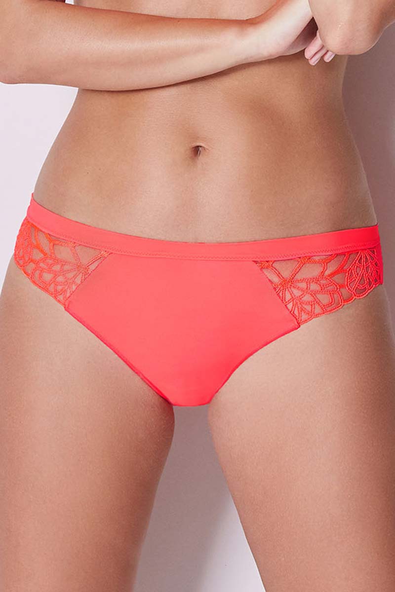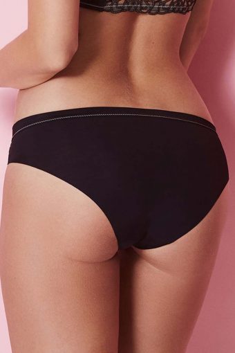 Majtki klasyczne typu tai. Mocniej wykrojone na biodrach. Przód i tył wykonane z gładkiego, jednolitego materiału. Tył majtek zakończony bezszwowo.