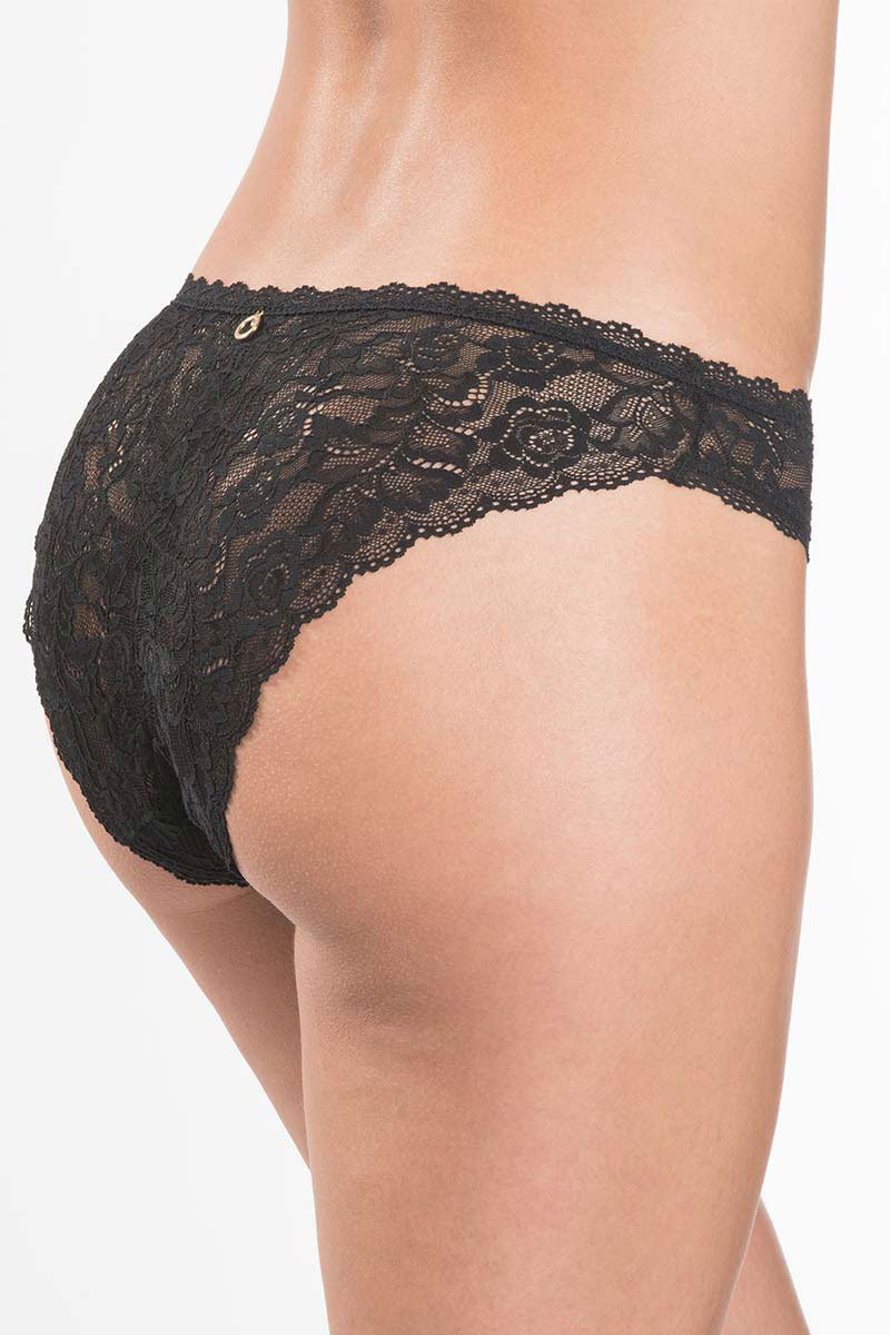 Majtki klasyczne typu tai, italian brief. Mocno wykrojone na biodrach.Tył i przód koronkowe. Wykonane z lekko elastycznej, żakardowej, kwiatowej, francuskiej koronki z recyklingu. Rosessence Care jest połączeniem uwodzenia i komfortu z linią, która szanuje środowisko. Ta ponadczasowa linia, wykonana z koronki pochodzącej z recyklingu, ozdobiona jest kryształkami Swarovskiego, które dodają jej codziennego wyrafinowania.