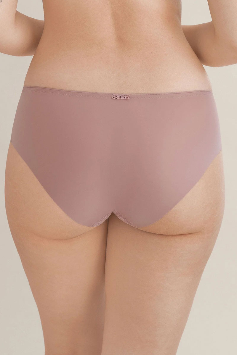 Majtki klasyczne typu tai- maxi brief. Wysokie do talii . Fason klasyczny z wyższymi bokami, które są ozdobione delikatną siatką, na której jest element haftu w motywie roślinnym. Tył w pełni zakrywa pośladki efektownie je podkreślając a bezszwowe cięcie pozwala na stosowanie do różnych nawet najbardziej wymagających stylizacji.