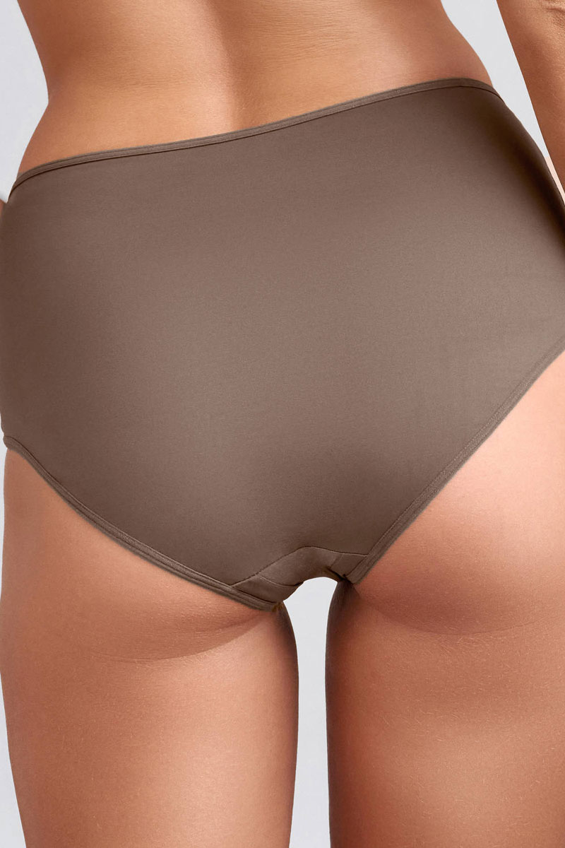 Majtki klasyczne typu tai-maxi-retro (High Waist Brief). Wysokie do talii, mocno zabudowane na biodrach. Wykonane z gładkiego, jednolitego materiału. Majtki bardzo ciekawe i niepowtarzalne.