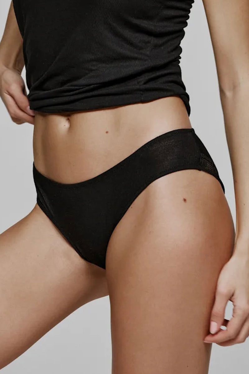 Majtki typu hotpants – szorty o szerszych bokach. Wykonane z gładkiej, jednolitej tkaniny z modalu. Sposób produkcji modalu sprawia, że stał się on dobrą alternatywą dla bawełny i jest biodegradowalny. Obydwa materiały oddychają i są niezwykle komfortowe w noszeniu. Modal pochłania jednak o 50% więcej wilgoci niż bawełna, dlatego zdecydowanie lepiej sprawdzi się jako bielizna nocna. Modal uważany jest za materiał antyalergiczny, niepodrażniający skóry, a do tego bezpieczny nawet dla najdelikatniejszych fragmentów ciała. Naukowcy twierdzą, że posiada on również właściwości, które hamują rozwój bakterii. Modal jest wyjątkowo delikatny oraz posiada gładką strukturę materiału, co jest wyjątkowo przyjemne dla skóry. Dzięki temu komfort noszenia odzieży i bielizny z modalu jest zdecydowanie większy niż w przypadku innych materiałów. Tył majtek wykończony ozdobną lamówką.