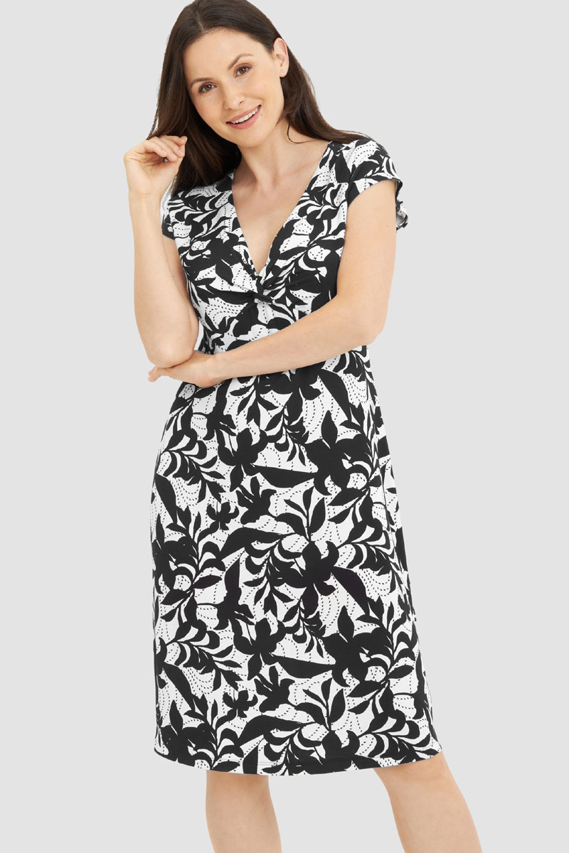 Sukienka letnia, plażowa z krótkim rękawem. Wykonana z przyjemnej, wiskozowej tkaniny. Wiskoza jest przewiewna i lekka, produkowana jest z włókien celulozy, co sprawia iż gwarantuje ona dobre właściwości higroskopijne, świetnie pochłania pot i wodę i odprowadza je z powierzchni skóry. Włókna wiskozowe są bardzo miękkie i przyjemne w dotyku. Wiskoza jest bez wątpienia idealnym materiałem na letnią odzież. Długość 95 cm.