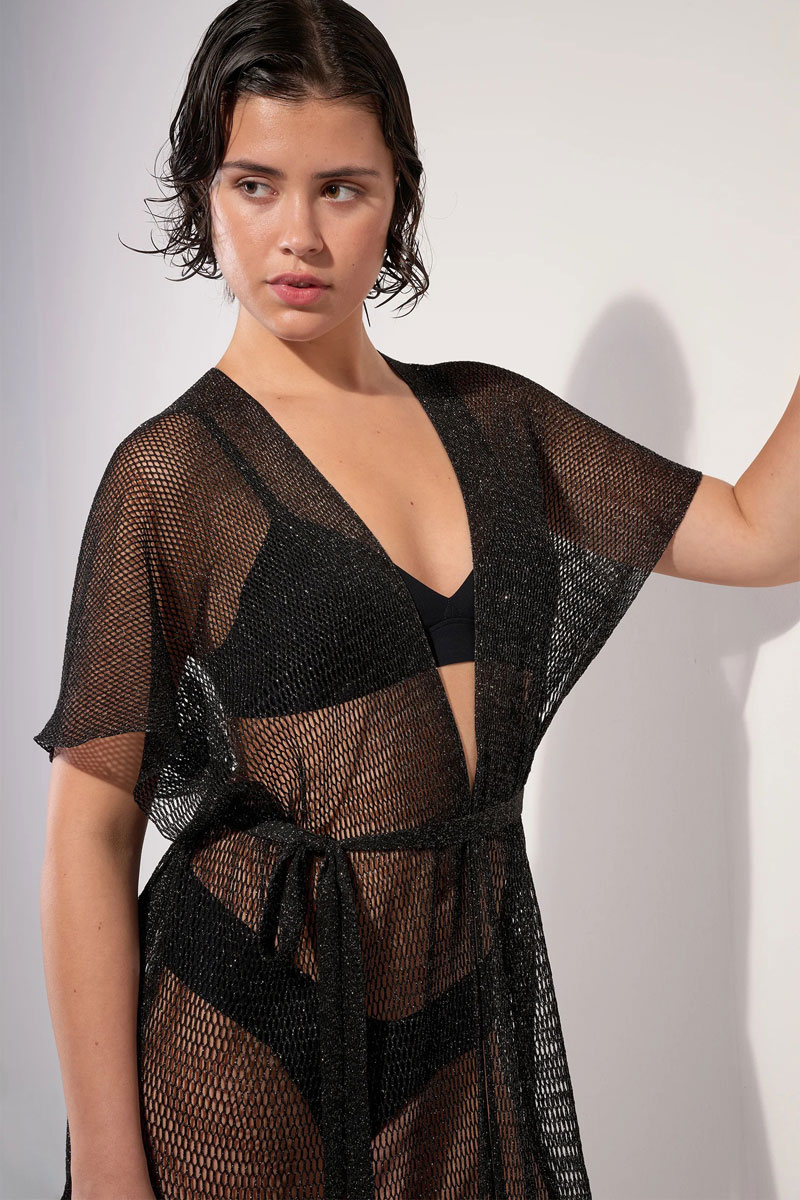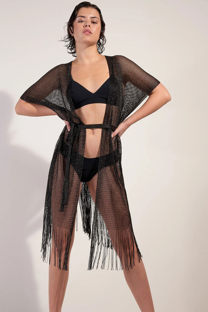 Tunika plażowa Pain de Sucre Vita 77 Noir Summer Viscose Kimono Tunic