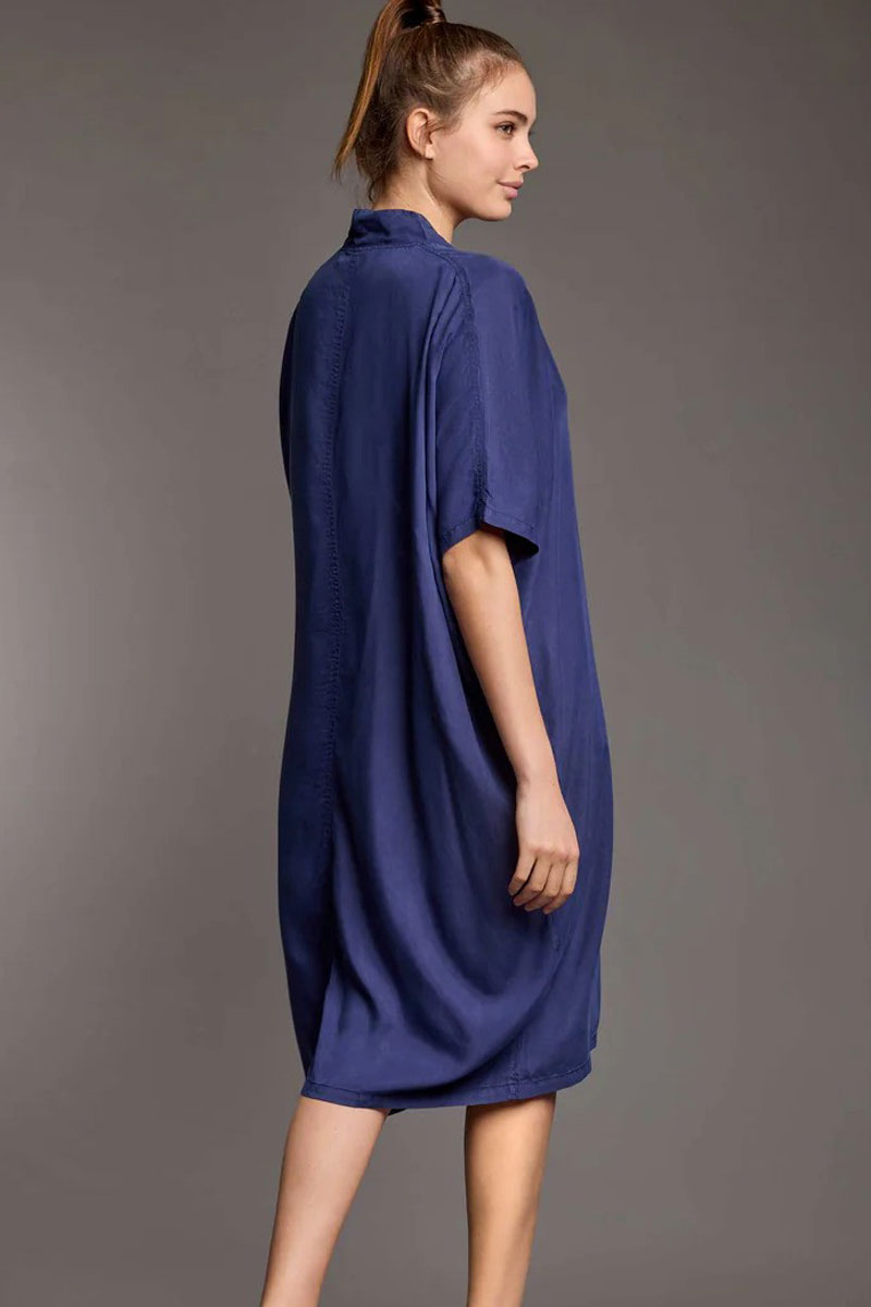 Tunika plażowa – letnia, długa, z krótkim rękawem. Dekolt w kształcie litery V. Tunika wykonana z przyjemnej, delikatnej, cienkiej, przewiewnej tkaniny z Lyocellu. Lyocell to materiał który łączy zalety bawełny i wiskozy. Jest to tkanina wytwarzana z włókien celulozowych pozyskiwanych z drewna. Lyocell znany jest ze znakomitych właściwości oddychających. Włókna w optymalnym stopniu pochłaniają wilgoć oraz regulują temperaturę, dzięki czemu lyocell nadaje się na każdą porę roku. Jest bardzo łatwy w utrzymaniu, a jego włókna są bardzo trwałe. Takie ubrania nie rozciągają się, nie kurczą i praktycznie nie niszczą przez lata. Lyocell bardzo często łączony jest z bawełną, dzięki czemu ubrania są delikatniejsze, a dodatkowo mniej się gniotą i znacznie łatwiej je prasować. Materiał ten jest przyjazny dla środowiska, ponieważ ulega biodegradacji. Długość 110 cm.