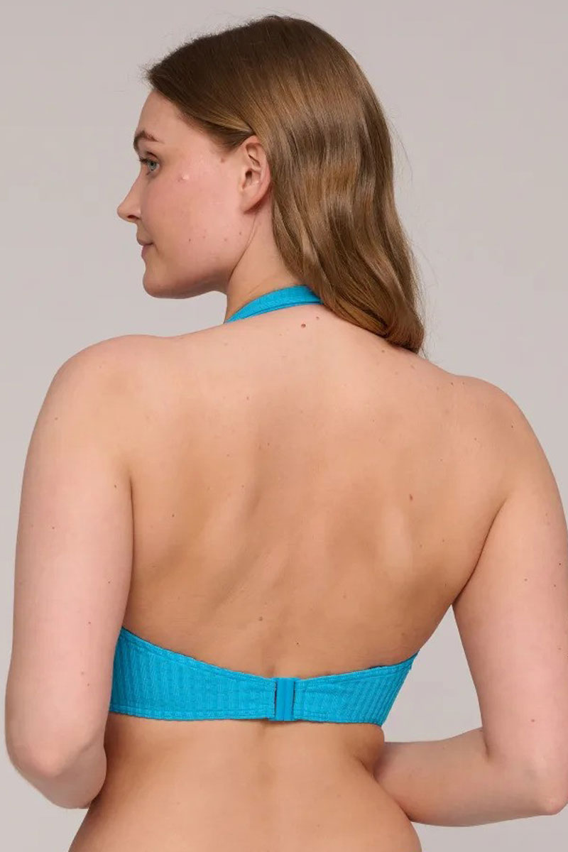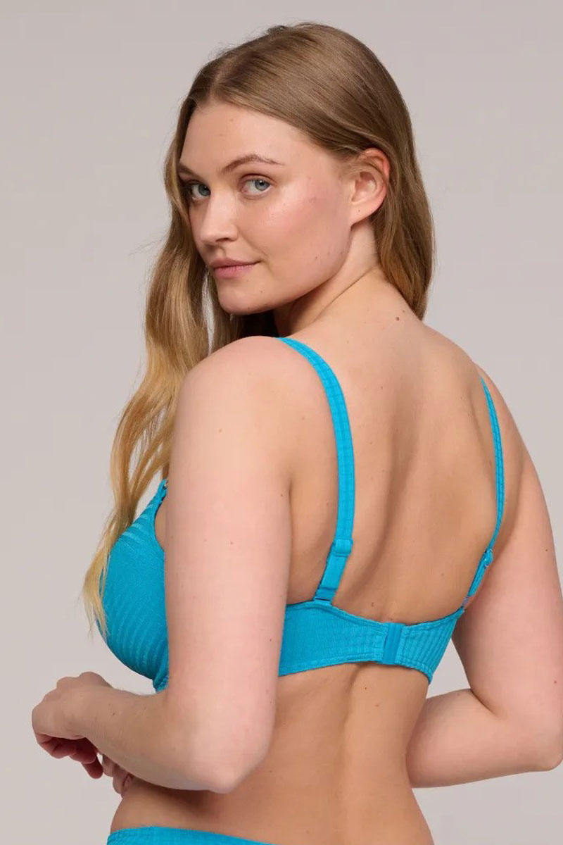 Biustonosz z miękkimi miseczkami z fiszbinami o kroju klasycznym, mocniej zabudowanym typu bikini top full cup wire bra. Miseczki gładkie, bezszwowe, termicznie wyprofilowane. Miseczki posiadają boczne patki, które zbierają biust do środka. Biustonosz wykonany z wysokiej jakości tkaniny z lycrą. Doskonale podtrzymuje i unosi nawet większy biust. Między miseczkami element biżuteryjny. Ramiączka proste, komfortowe, regulowane z tyłu i z tyłu odpinane, istnieje możliwość zapięcia ich na szyję lub na plecach na krzyż. Występuje do miseczki I. Jest to model klasyczny i ponadczasowy.