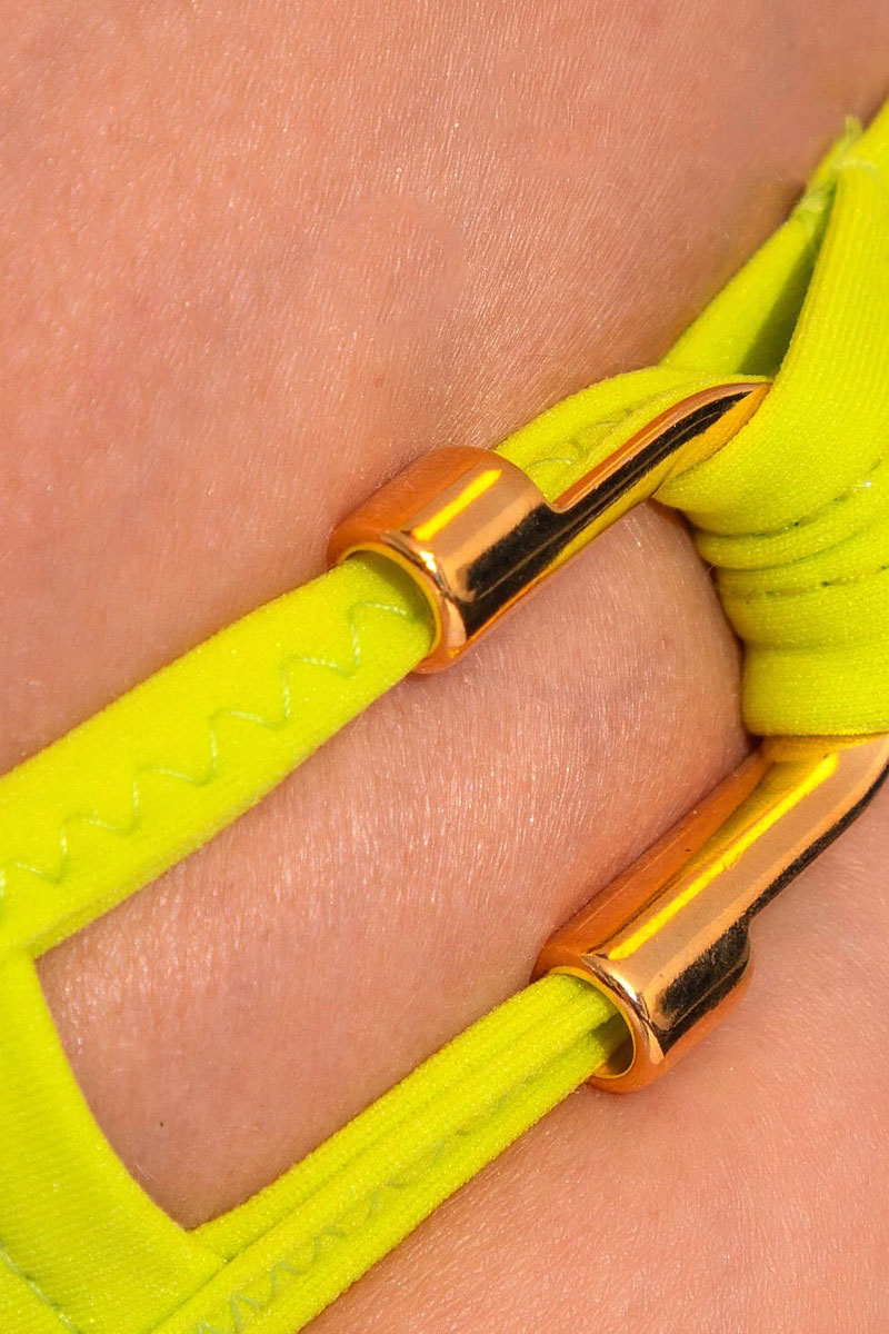 Majtki typu tai mini bikini brief. Biodrówki o obniżonym stanie , bardzo mocno wykrojone na biodrach i z tyłu. Po bokach wykończone oryginalnym elementem biżuteryjnym. Wykonane z wysokiej jakości tkaniny z lycrą.