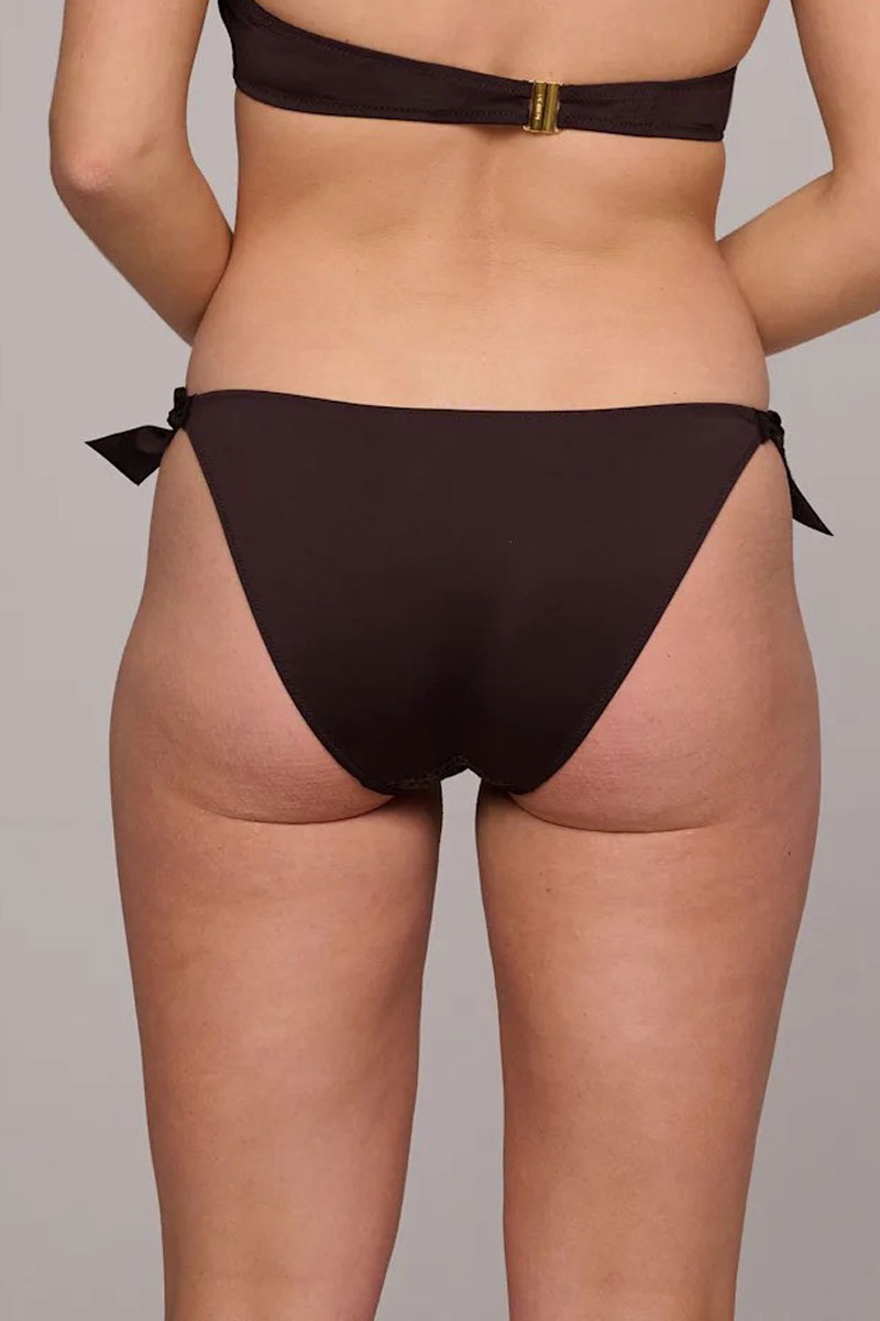 Majtki klasyczne typu tai-tanga – mini bikini brief. Biodrówki o obniżonym stanie. Zawiązywane po bokach. Z tyłu mocno wykrojone. Wykonane z wysokiej jakości tkaniny z lycrą.